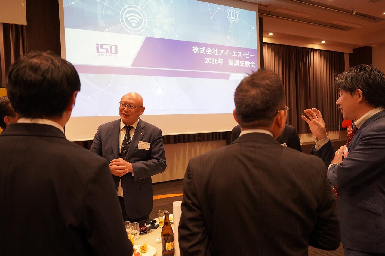 株式会社アイ・エス・ビー(以下、ISB)では、新年のご挨拶と日頃の感謝の気持ちを込め、2026年1月26日(月)に「賀詞交歓会」を開催しました。当日はビジネスパートナー企業様や関連企業様をはじめ32社・60名を超える企業の皆様にご参加いただきました。