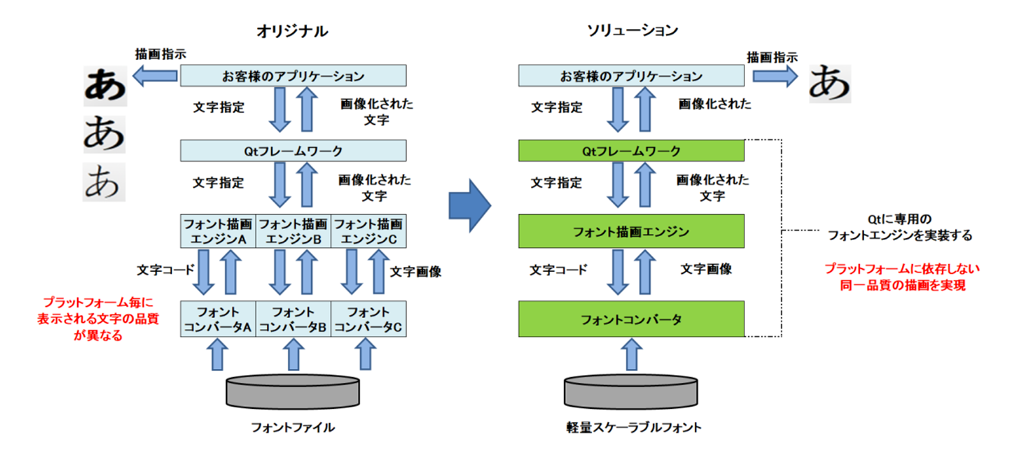 マルチプラットフォーム向け開発キットである Qt クロスプラットフォームのフォント描画は、それぞれのプラットフォームに依存しているため、アプリケーション上で同一品質の描画が実現できていないのが現状です。
